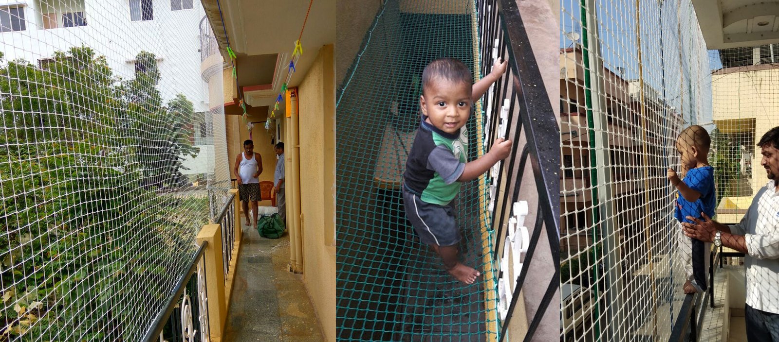 When you have children at home, it is important to ensure their safety. In this busy life, everyone gets a job and goes to their job at work.At the same time the children are at home and spend their time in the balcony area. Children safety nets in Bangalore, especially in high rise buildings or apartments,These are built with balconies. So you need to take care of your children, because no one will be at home to look after their children. Child safety nets Child safety nets or child safety nets are the best prevention for all tall buildings and apartments in Bangalore.Get our Venala Children Safety Nets at affordable prices. Children safety nets in Bangalore These nets also protect your balcony from monkeys, birds, etc. so they cannot enter the area.We have a very experienced team in fixing child safety nets, they are very talented in making sure that the nets on your balcony are well set up and set up properly.